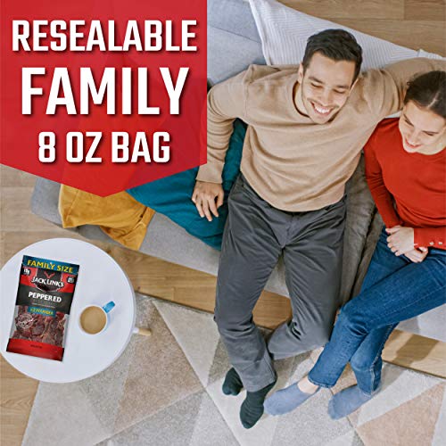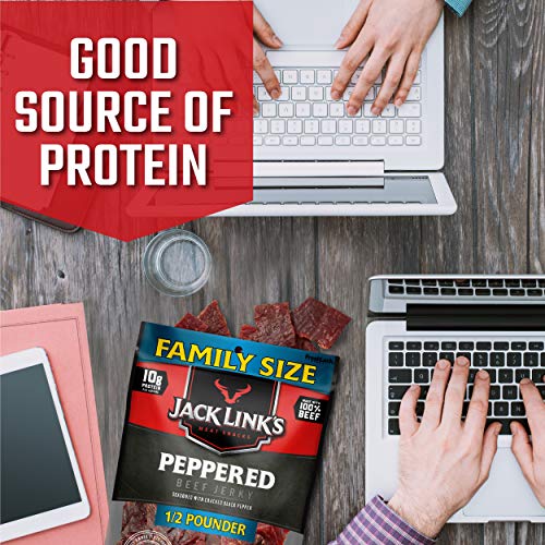 Jack Link’s Beef Jerky, Peppered, ½ Pounder Bag – Meat Snack with a Pepper Kick, 10g of Protein, 80 Calories – Made with 100% Premium Beef – 96% Fat Free, No Added MSG or Nitrates/Nitrites