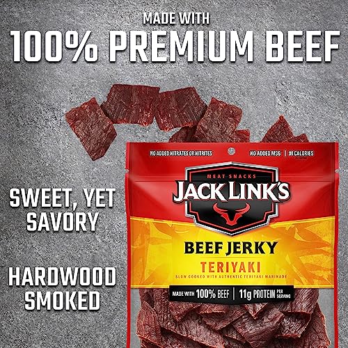 Jack Link’s Beef Jerky, Teriyaki Flavor, 2.6 Oz – Flavorful Meat Snack, 11g Of Protein And 80 Calories, Made With 100% Beef – No Added MSG Or Nitrates/Nitrites