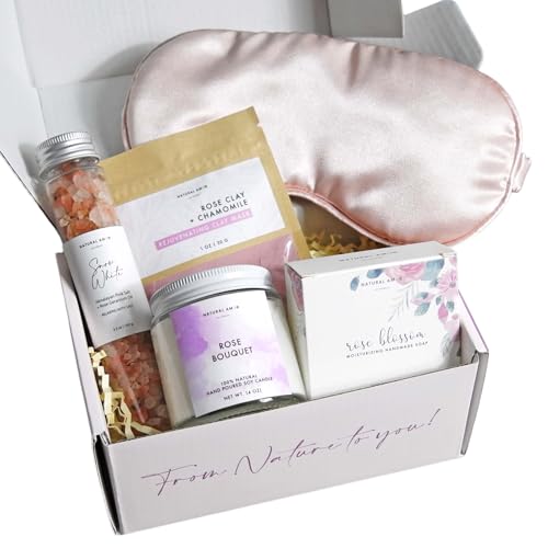 Natural Amor- Spa Gift Set for Women-Bath gift for her- 5pc Bath & Body gift including soap bar, bath salt