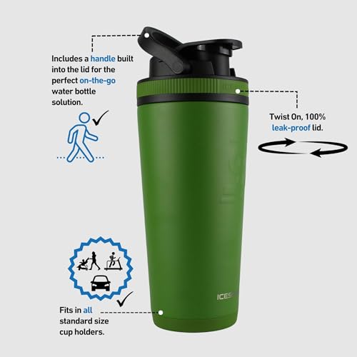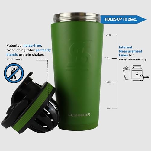 Specification: Ice Shaker 26 Oz Shaker Bottle, Stainless Steel Water Bottle and Protein Shaker, As Seen on Shark Tank, Reusable Stainless Steel Water Bottle, Gym Water Bottle, Green