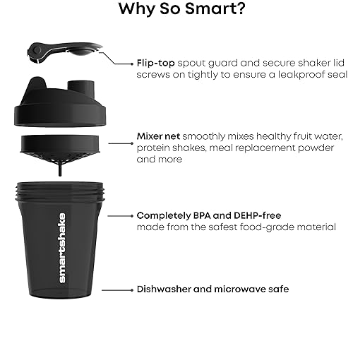 Specification: Smartshake Lite 4-Pack Protein Shaker Bottle 400 ml | 13.5 oz – Leakproof Screw-on Lid – BPA Free – Unisex – (Mist Grey, Army Green, Black, Navy Blue)