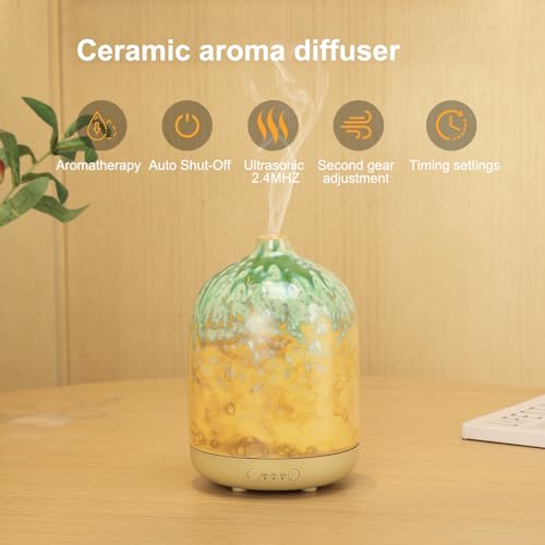 Ceramic Essential Oil Diffusers for Home, Decorative Bedroom Aromatherapy Scent Air Diffuser Reactive Glaze Ultrasonic Aroma Defusers 250ml with Timed