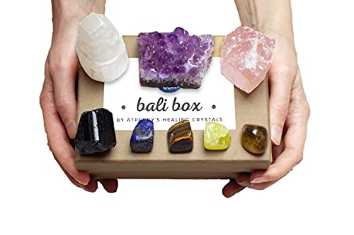 Specification: AtPerry’s Bali Box – Healing Crystals Set – 8 Natural Chakra Crystals Tumbled & Raw Including Selenite, Amethyst, Lapiz Lazuli & Black Tourmaline
