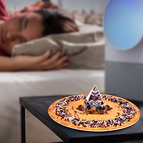 💎ANCIENT MYSTERIOUS PATTERN ALTAR Good materials with astrological patterns and ancient symbols, make a retro and exquisite Orgonite pyramid energy altar (7in), which can absorb more constellation energy. Placing Orgonite pyramids, lucky stones in the energy altar can gather constellation energy for the Healing Crystal Energy Set and it is usually a very beautiful decoration.