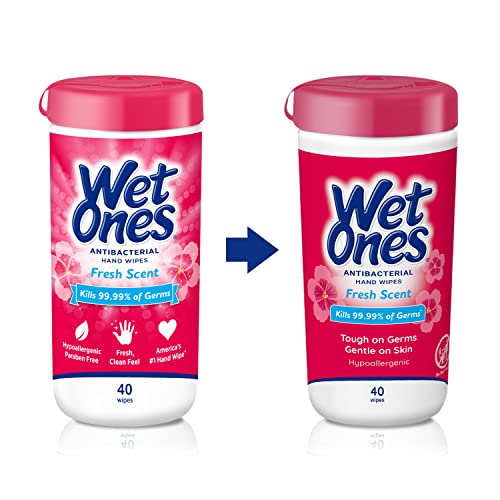 Wet Ones Antibacterial Hand Wipes, Fresh Scent Wipes | Antibacterial Wipes, Hand Sanitizer Wipes, Wet Ones Wipes, 40 ct. Canister (6 pack)