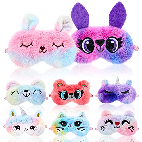 8 Pcs Sleep Mask for Kids, Unicorn Sleeping Mask Plush Sleeping Eye Cover Kids Cats Eye Mask Plush Blindfold for Girls Boys and Adults, Home, Travel, Office