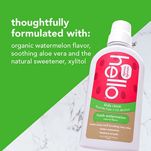 Hello naturally friendly kids natural watermelon fluoride free rinse is thoughtfully formulated with natural watermelon flavor, soothing aloe vera and high quality sweeteners