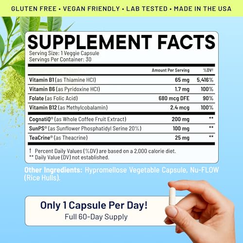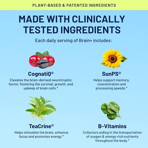 Specification: Plus – Brain Supplements for Memory & Focus | Nootropic to Support Concentration & Brain Health | Vitamin B1, Vitamin B6, Vitamin B12, Sunflower Lecithin Phosphatidylserine | 60 Vegan Capsules