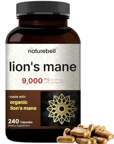 NatureBell Lions Mane Mushroom Supplement Capsules 9,000mg, 240 Capsules | 120 Days Supply – Made with Organic Lion’s Mane Powder Extract – Cognitive Brain Nootropic & Immune Health Support – Non-GMO