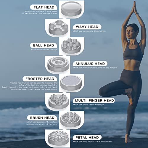 【VERSATILE MASSAGE】Includes 1 x Ball head which can cellulite removal; 1 x Wavy head which can accelerate blood circle; 1 x Flat head which can massage fragile areas of skin;1 x Mesh cover which prevent hair from getting involved inside the machine.There are other massage heads, Multi-function massage head, there may be at all times one suitable for you.