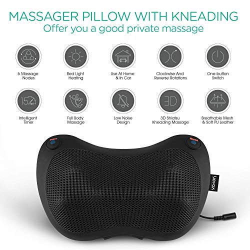 Shiatsu Neck and Back Massager with Heat – 3D Kneading Deep Tissue Massage Pillow for Lower Back, Shoulder, Calf, Foot, Use at Home, Car, Office YZ100