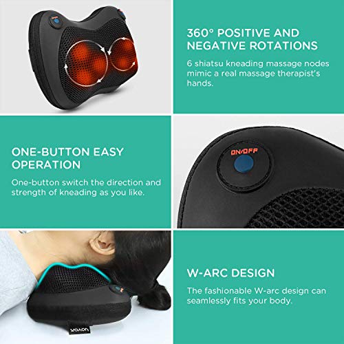 Muscle Stress & Pain Relief – VOYOR shiatsu neck & back massager has 6 powerful 3D massage nodes, which can simulate the kneading action of a real person, allowing it to accurately reach painful points and deeply relieve muscle tension and pain.