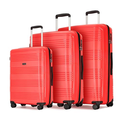 Specification: GinzaTravel 3 Piece Expandable Luggage Sets 20/24/29 inch Durable Suitcase Sets with Double Spinner Wheels TSA Lock For Travel Trips,Red