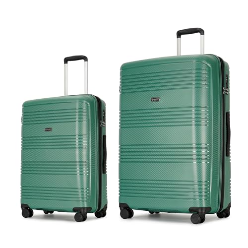 Specification: GinzaTravel Luggage Sets 2 Piece, Hard Shell Expandable Luggage Sets, Lightweight PP Material Travel Suitcase Sets With Spinner Wheels & TSA Lock for Men Women, 20/29″, Green