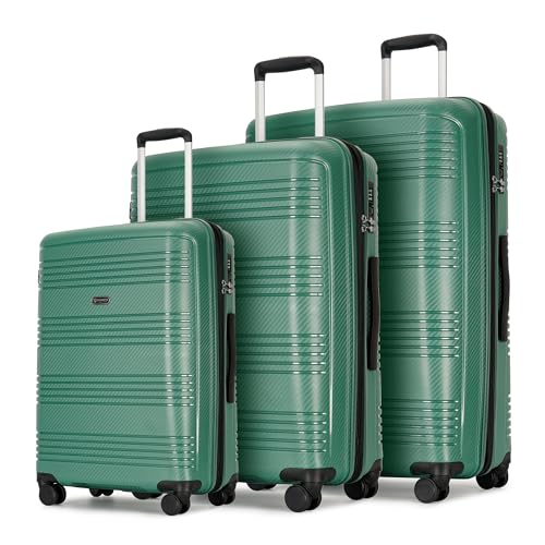 GinzaTravel Luggage Sets 3 Piece, Hard Shell Expandable Luggage Sets, Lightweight PP Material Travel Suitcase Sets With Spinner Wheels & TSA Lock for Men Women, 20/24/29″, Green
