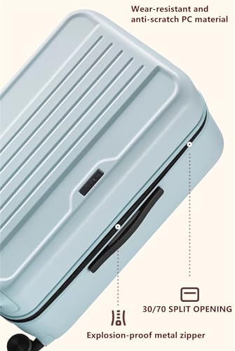 GinzaTravel Trunk Spinner Luggage Sets PC Hardside Luggage Lightweight Suitcase set with TSA Lock and foldable cup holder Light blue, 2-PC Set -Trunk(20/30)