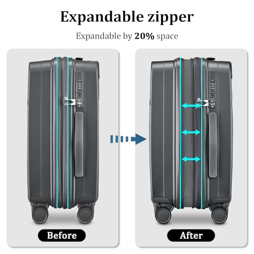 【High Quality Luggage Set】The carry-on luggage is made of high quality PP material, lightweight and durable. The set includes 1 expandable carry on luggage 22x14x9 airline approved (22*14*9 IN) ,1 travel tote bag (17.1*11.4*7.5 IN), The perfect combination for more of your travel needs.