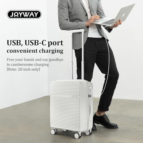 Specification: Joyway Luggage Sets 3 Piece, Expandable Suitcase set with Spinner Wheels and Charger, Hard Shell Lightweight Rolling Travel Luggage with TSA Lock (White, 4 Piece Luggage Sets)