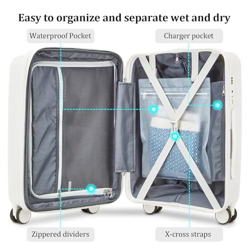 【Expandable Capacity】This luggage sets features an expandable zipper that adds up to 20% more space to your carry-on luggage. It is also organized internally with YKK zippered dividers and X-cross straps, and is equipped with a waterproof bag for effective wet/dry separation.