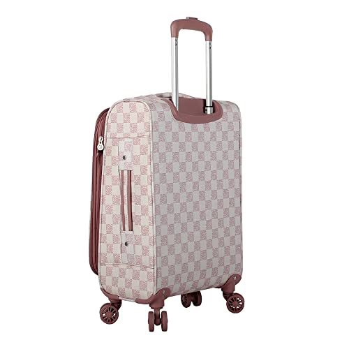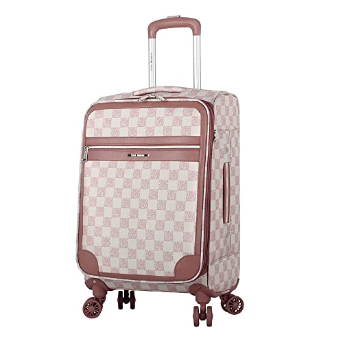 steve madden Designer Luggage Collection – Lightweight Softside Expandable Suitcase for Men & Women – Durable 20 Inch Carry On Bag with 4-Rolling Spinner Wheels (Chalet Pink, 20in)
