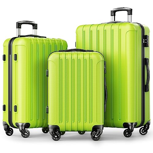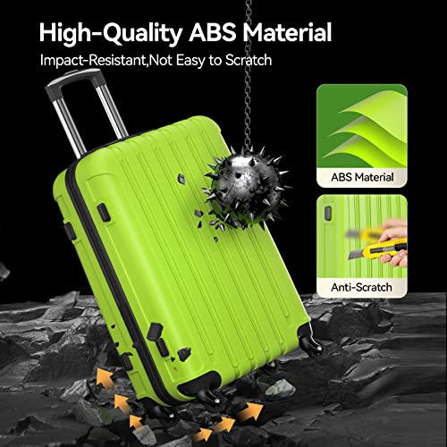 Strenforce Luggage Sets ABS Lightweight Suitcase Sets Spinner Wheels TSA Lock 3 Piece Luggage Set(20/24/28),Apple Green
