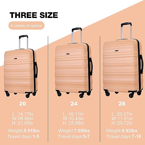 Specification: Travelhouse Amalodie Hardshell Upright Spinner Wheel Suitcase Set PP ABS, Lightweight Checked Carry-On Luggage 3-Piece Set with Spinner Wheels TSA Locks 20″ 24″ 28″ (Light Champagne)