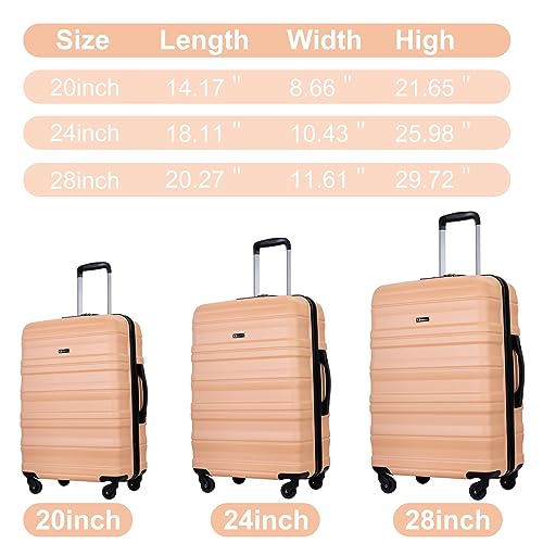 Travelhouse Hardshell Luggage 3-Piece Set: Suitcases with Spinner Wheels and TSA Lock in 20in, 24in, and 28in – Designed for Women. (Champagne, Expandable 3 Piece Set)