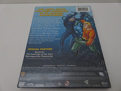 When fiendish foes and marine menaces threaten the peaceful undersea world of the lost city of Atlantis, Aquaman, King of the Seven Seas, dives to the rescue! Aided by teen hero Aqulad and their aquatic friends Tusky the walrus and sea horses Storm and Imp, these brave water warriors battle astonishing creatures like Volcanic Monster, Ice Dragon and Devil Fish. Using his superior strength, cunning wit and telepathic communication abilities, Aquaman faces evil villains like Black Manta and Vassa, Queen of the Mermen to fight for justice on the ocean floor. Plunge into this collection of all 36 action –packed cartoons from the fantastic TV series in original airdate order.
