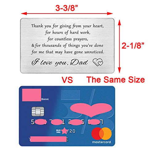 Dad Gifts Engraved Wallet Card – Thank You Dad I Love You – Birthday Card for Dad, Fathers Day, Christmas