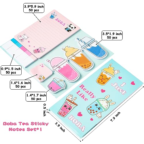 I Just Really Like Boba Sticky Notes Set, 550 Sheets, Cute Bubble Tea Self-Stick Notes Pads Milk Tea Theme Divider Tabs Bundle Writing Memo Pads Back to School Office Supplies Small Gift