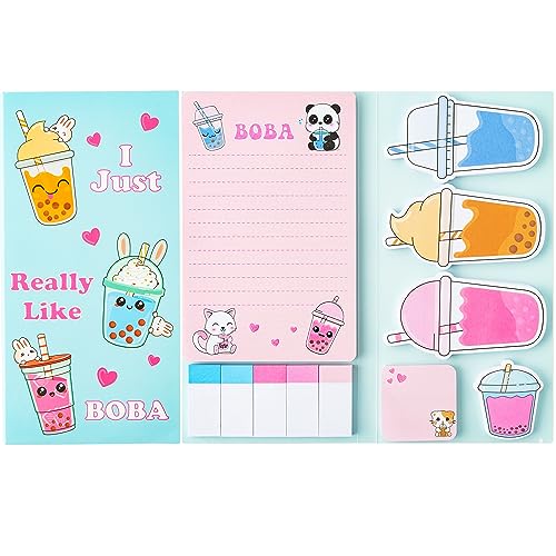 Specification: I Just Really Like Boba Sticky Notes Set, 550 Sheets, Cute Bubble Tea Self-Stick Notes Pads Milk Tea Theme Divider Tabs Bundle Writing Memo Pads Back to School Office Supplies Small Gift