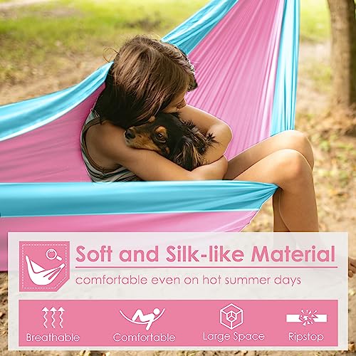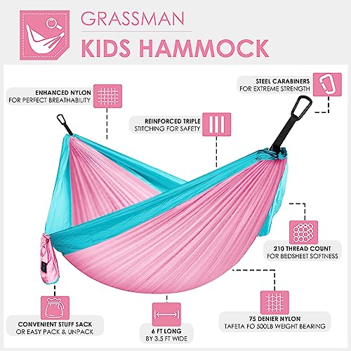 GRASSMAN Kids Hammock-Small Camping hammocks, Portable Camping Gear for Child Indoor/Outdoor use, with Tree Straps & Carabiners Pink & Blue