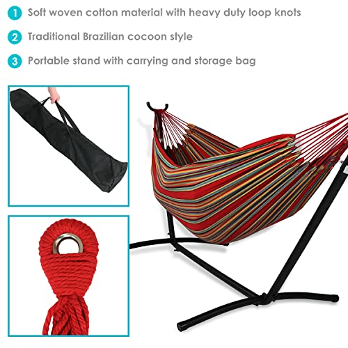 Sunnydaze Double Brazilian Hammock with Stand and Carrying Case – 400-Pound Capacity – Black Stand – Sunset