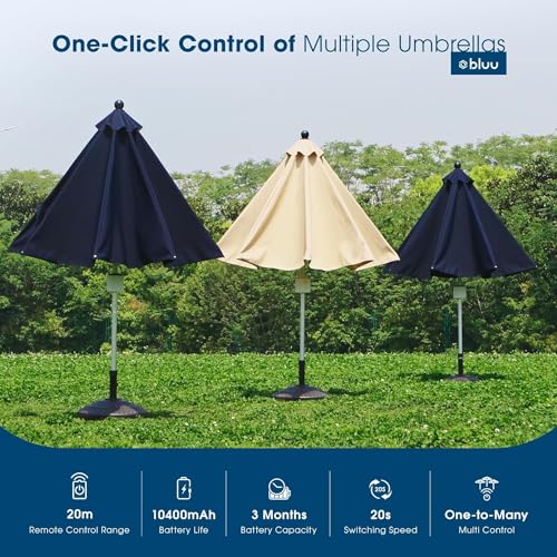 Specification: BLUU 9 FT Automatic Aluminum Outdoor Patio Umbrella with Remote Button Controls, Outdoor Market Table Umbrella, UV-Resistant Fade-Resistant for Garden, Deck, Backyard, Pool and Beach