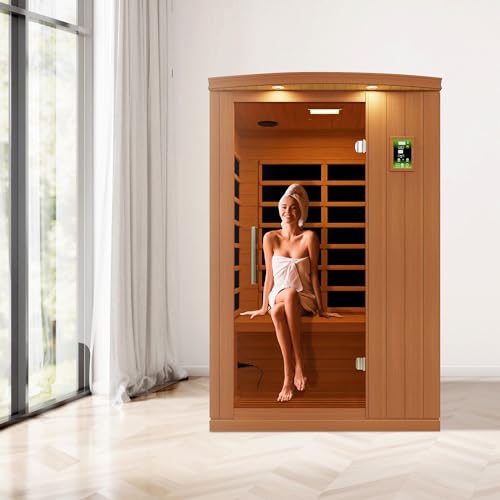 Dynamic Saunas Venice Elite 2 Person Capacity PureTech Ultra Low EMF Infrared Therapy Home Sauna Box with Bluetooth, Roof Vent, and LED Control Panel