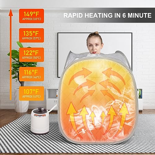 🌟[Sauna box temperature]: 2L&900W super high power can produce heat quickly in 8 minutes, the highest temperature can reach 122℉, 9-speed temperature adjustment, 99-minute timer setting