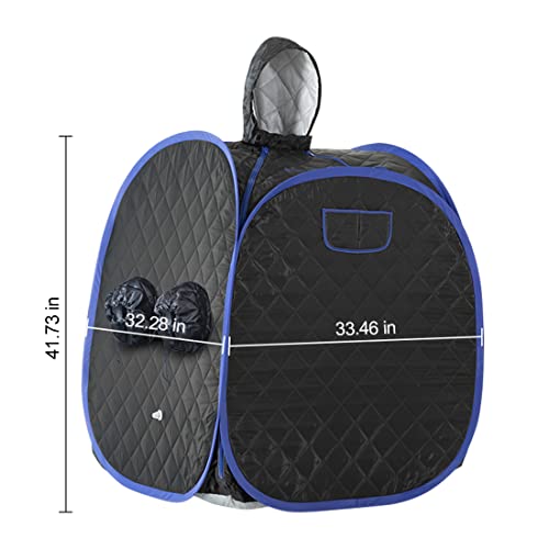 Specification: ZONEMEL Portable Steam Sauna, Full Body Home Sauna Spa, 1 Person or 2 Person Share Saunas, 2L Steam Generator with Remote Control (Black, L 33.5”x W 32.3”x H 41.7”)