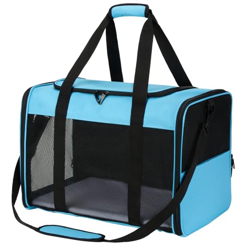 Cat Carrier Large Dog Soft-Sided Carrier, Cat Carrier Soft for 2 Cats with Upgrade Zippers, Collapsible Pet Carrier Suitable for Puppy and Kitten Under 25lbs, Large-Blue