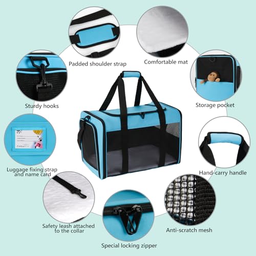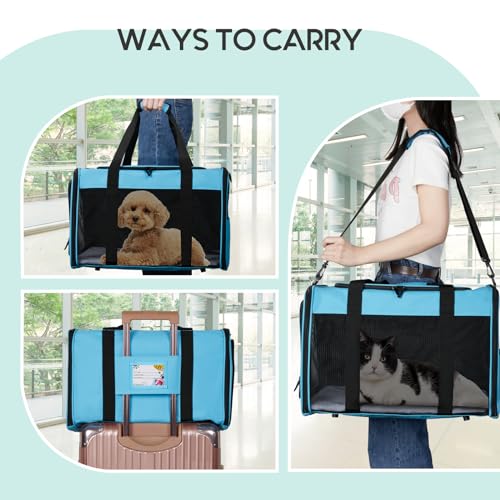 Specification: Cat Carrier Large Dog Soft-Sided Carrier, Cat Carrier Soft for 2 Cats with Upgrade Zippers, Collapsible Pet Carrier Suitable for Puppy and Kitten Under 25lbs, Large-Blue