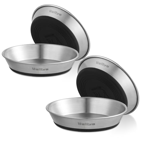 Specification: Wellbro Cat Bowls, 4 Pcs Stainless Steel Cat Bowls for Food and Water, Whisker Fatigue Shallow Non-Slip Cat Dishes Plates for Small Dog Puppies Cats