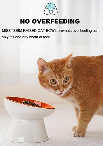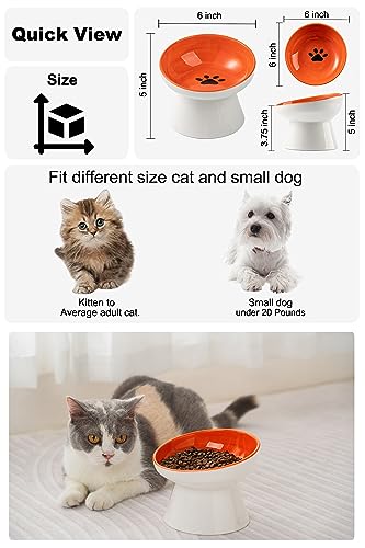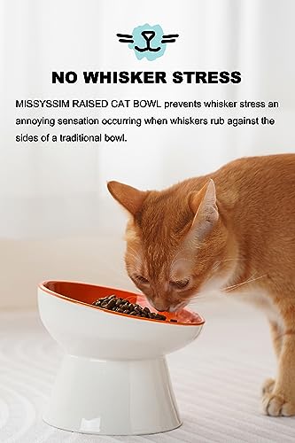 MISSYSSIM Cat Bowls, Ceramic Raised Cat Food Bowl, Whisker Friendly Raised Cat Food Bowl for Food and Water, Cute Feeding Bowls for Indoor Kitten, Puppy Dogs, White and Orange