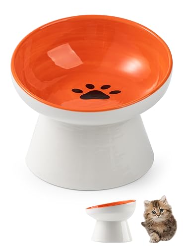 Specification: MISSYSSIM Cat Bowls, Ceramic Raised Cat Food Bowl, Whisker Friendly Raised Cat Food Bowl for Food and Water, Cute Feeding Bowls for Indoor Kitten, Puppy Dogs, White and Orange