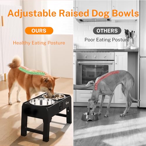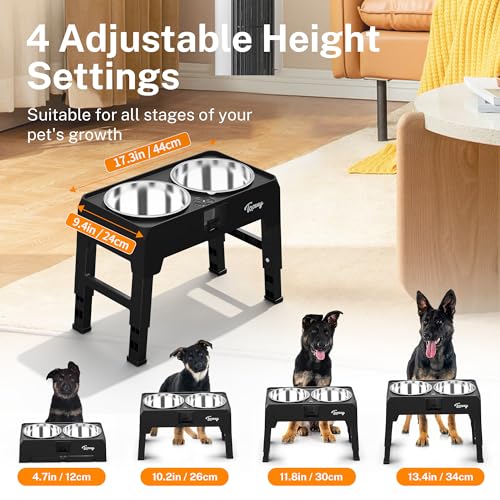 Specification: Toozey Elevated Dog Bowls Large Breed with 3 Extra Large Capacity Dog Food Bowls, 4 Heights Adjustable Raised Dog Bowl with Catchment Drawer Design for Large Medium Small Dogs-Black