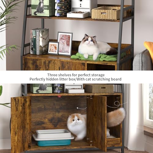 Specification: Cat Litter Box Enclosure with Shelves – Large Litter Box Enclosure with Cat Scratching Pad and Anti-Scratch, Vintage Wooden Hidden Cat Litter Box Furniture (Rustic Brown)