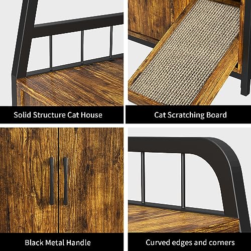 Cat Litter Box Enclosure with Shelves – Large Litter Box Enclosure with Cat Scratching Pad and Anti-Scratch, Vintage Wooden Hidden Cat Litter Box Furniture (Rustic Brown)