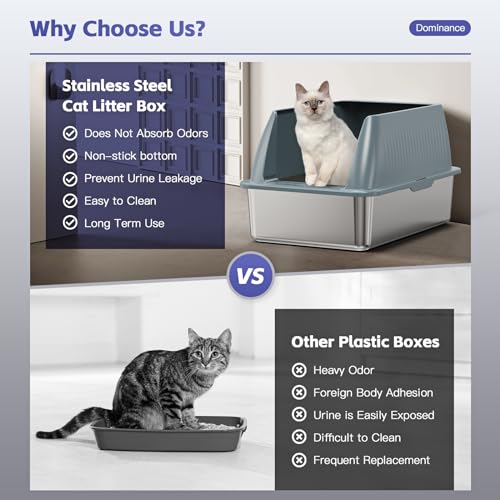 【Perfect Cat Gift】 Hobya large litter box stainless steel solved the issue of plastic cat litter boxes that attract odors, are hard to clean, leave scratches, leak urine, and have a short lifespan. Whether for your use or as a gift, the Hobya XL stainless steel litter box with high sides is the very best gift for your furry friend
