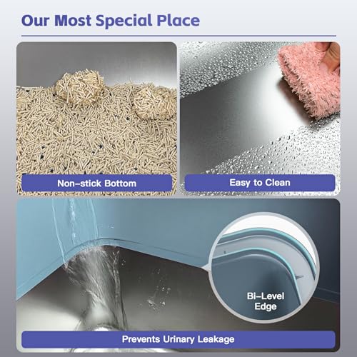 【Here’s Your Last Cat Litter Box】 Do you change your cat litter box often? Our XL cat litter box stainless steel with cover lasts up to 5 years, not easily deformed. Metal litter boxes are easier to clean than plastic cat litter boxes. Because it never absorbs odor or sticks to the bottom (Pour in 20lb of cat litter for better results) and all you need to do when cleaning is to rinse it with water and wipe it clean with a rag, which is a boon for cat owners