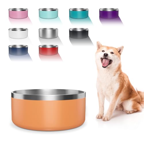 Dog Bowl, Stainless Steel Dog Food and Water Bowl with Non Slip Quiet Bottom, Easy to Clean, Dishwasher Safe, 64oz, Orange