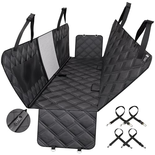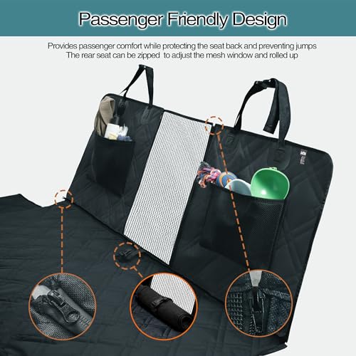 Dog Car Seat Cover for Back Seat, Waterproof Hammock with Mesh Window and Storage Pockets, Durable Heavy Duty Scratchproof Nonslip Pet Backseat Cover Protector for Cars, Trucks, SUVs