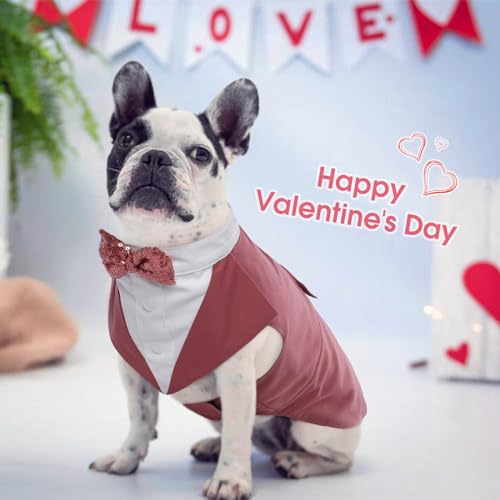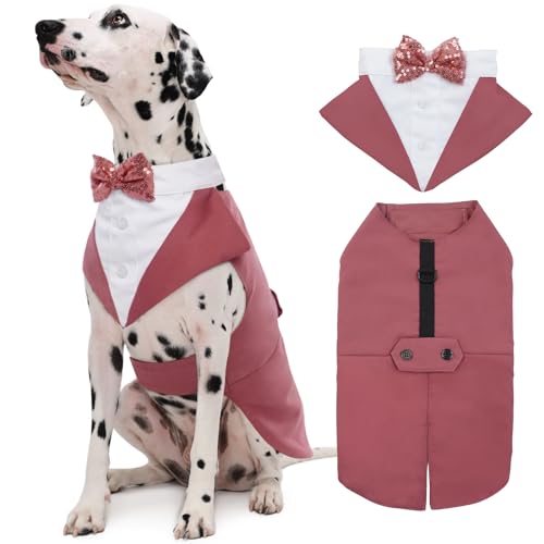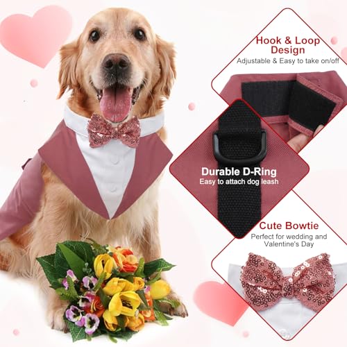 Kuoser Dog Tuxedo Dog Suit and Bandana Set, Dogs Tuxedo Wedding Party Suit, Dog Prince Wedding Bow Tie Shirt Formal Dog Wedding Attire for Large and Medium Dogs Golden Retriever Samo Bulldogs